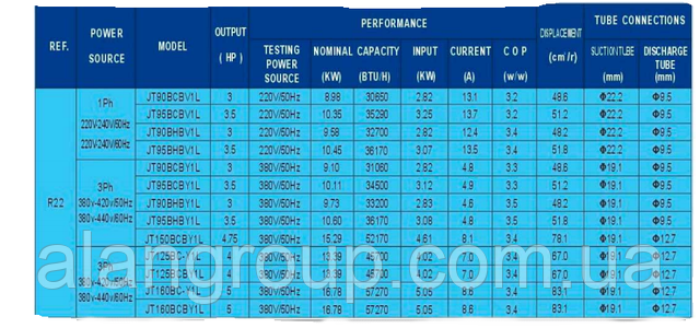 Детальний підбір компресорів Дайкін, що працюють на фреоні R-22: